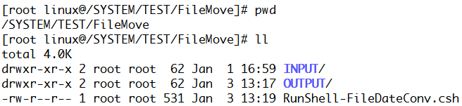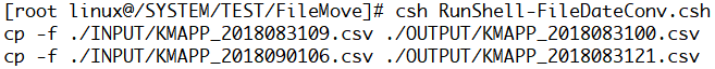 csh RunShell-FileDateConv.csh 명령어를 통해 쉘 실행