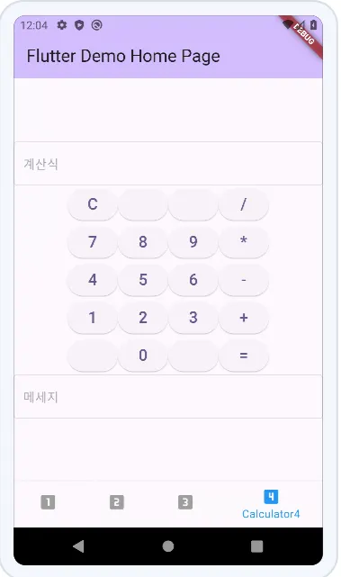 - 설명 : BottomNavigationBar를 사용하여 4개의 주화면을 구성한 후 단계별로 계산기를 만듭니다.