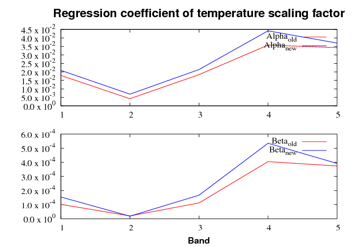 개선 전/후 자료 (OLD.out, NEW.out)가 생성되고 여기서 개선 전 자료의 2열은 의 회귀계수, 3열은 의 회귀계수