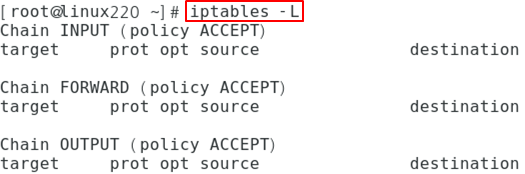 - 터미널에서 "iptables -L" (방화벽 설정 정보)를 입력하여 방화벽 해제 상태를 확인합니다.