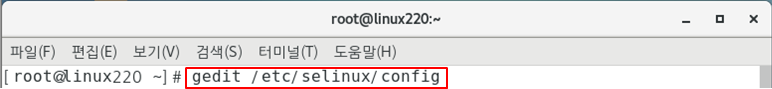 - 터미널에서 "gedit /etc/selinux/config"를 입력합니다.