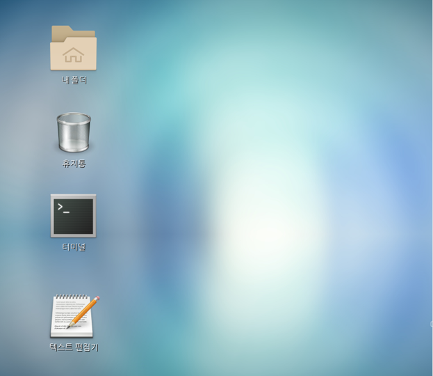 - 아래와 같이 바탕화면에서 터미널 및 텍스트 편집기 기능을 확인할 수 있습니다.