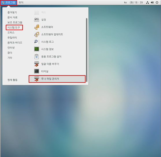 - 좌측 상단의 프로그램에서 "시스템 도구 & 투나 파일 관리자"를 선택합니다.