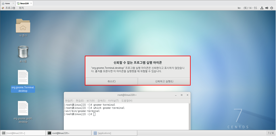 - 터미널 및 텍스트를 각각 더블 선택한 후 "선뢰하고 실행(L)"을 선택합니다.