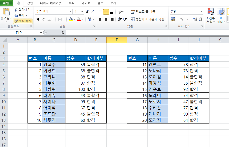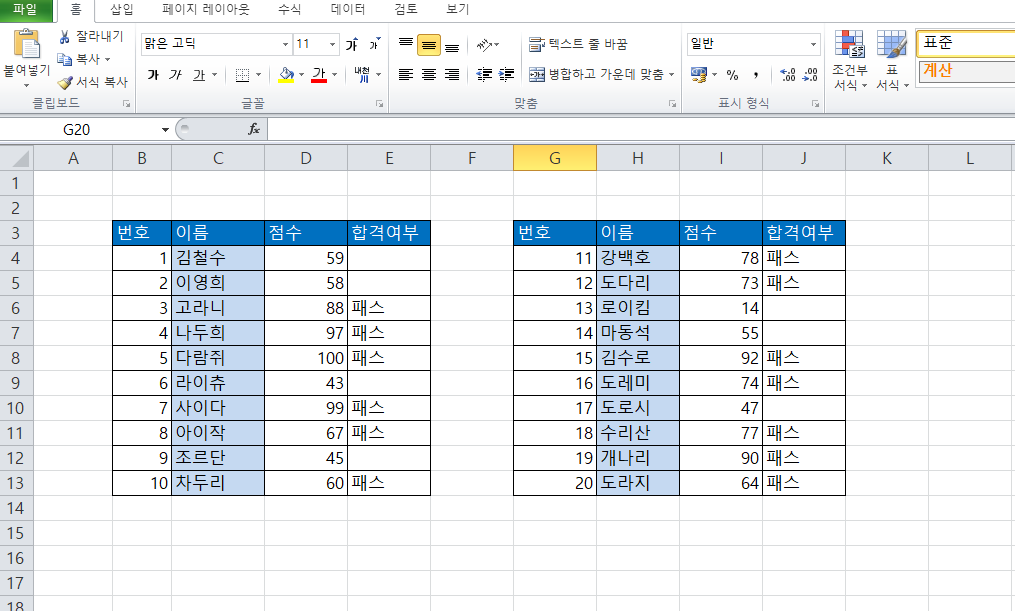 가령 위의 테이블로 다시 돌아가서 점수가 60점 이상인 인원에 대해서만 "패스" 라고 입력하는 경우를 예로 들 수 있다.