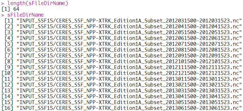 소스 코드를 실행 (Rscript Processing_Using_NetCDF_Format_of_NPP_CERES_SSF_Data.R)