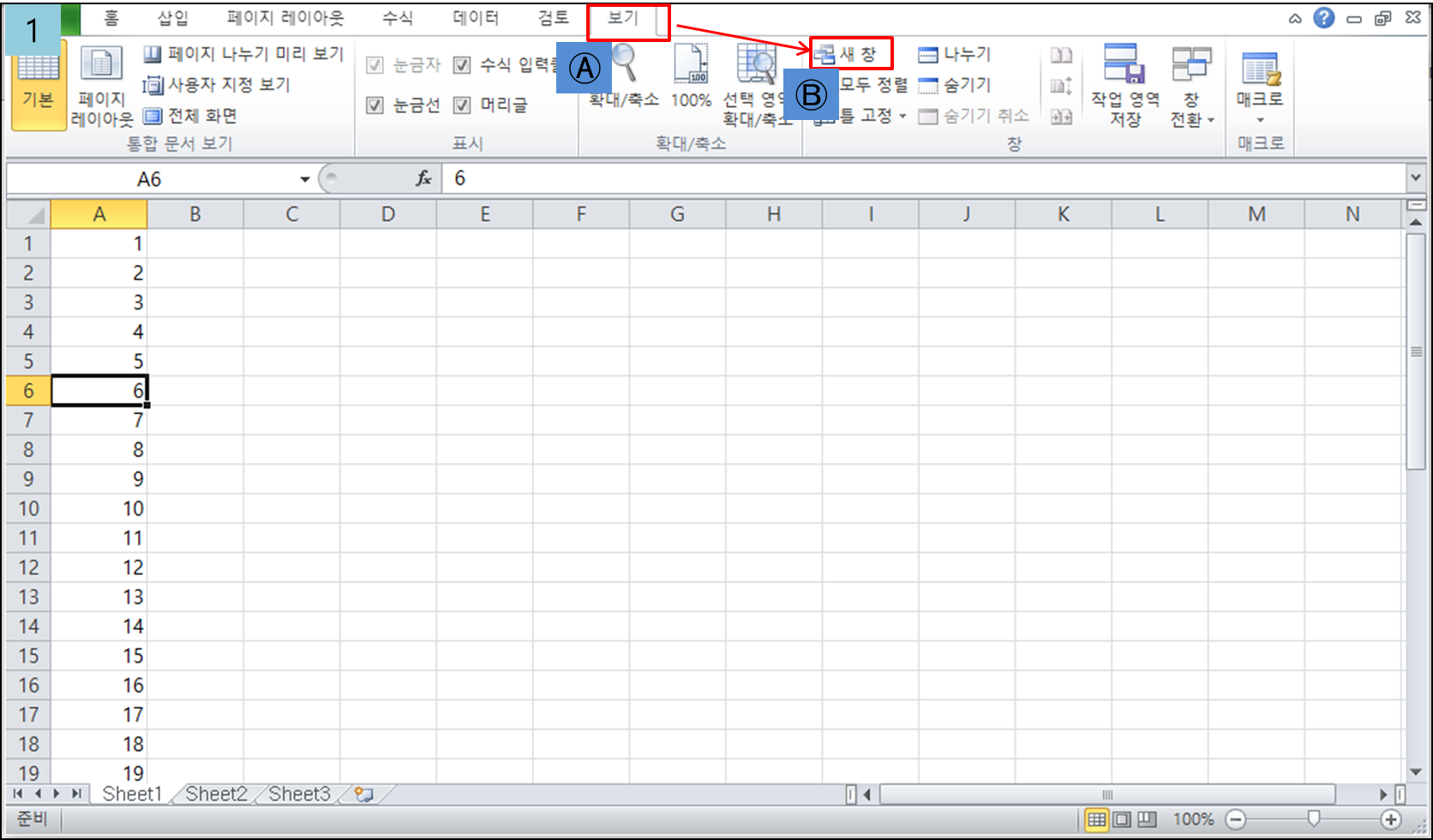 1. 매뉴의 "보기" 에서 "새창" 을 클릭한다.