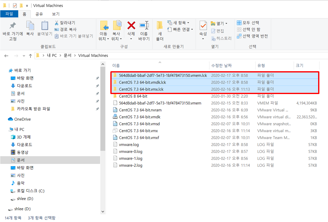 따라서 "C:\Users\jmpark\Documents\Virtual Machines"에서 "*.lck" 삭제 후 재 실행하면 됩니다.