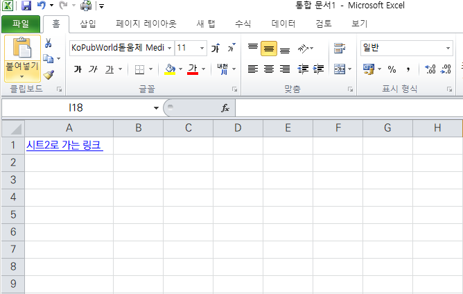 링크를 클릭하면 "Sheet2" 로 이동하는 것을 확인할 수 있다.