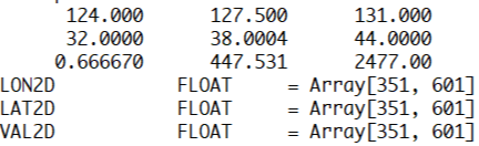 openr, lun, lon_file, /get_lun & readf, lun, lon2D & get_lun, lun