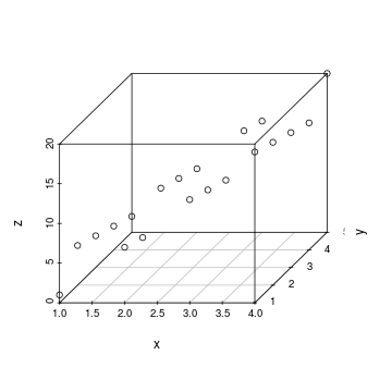 R에서 입체 산점도를 만드는 함수는 plot3d 및 scatterplot3d 등이 존재한다.