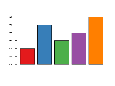 barplot(c(2, 5, 3, 4, 6), col = cols)