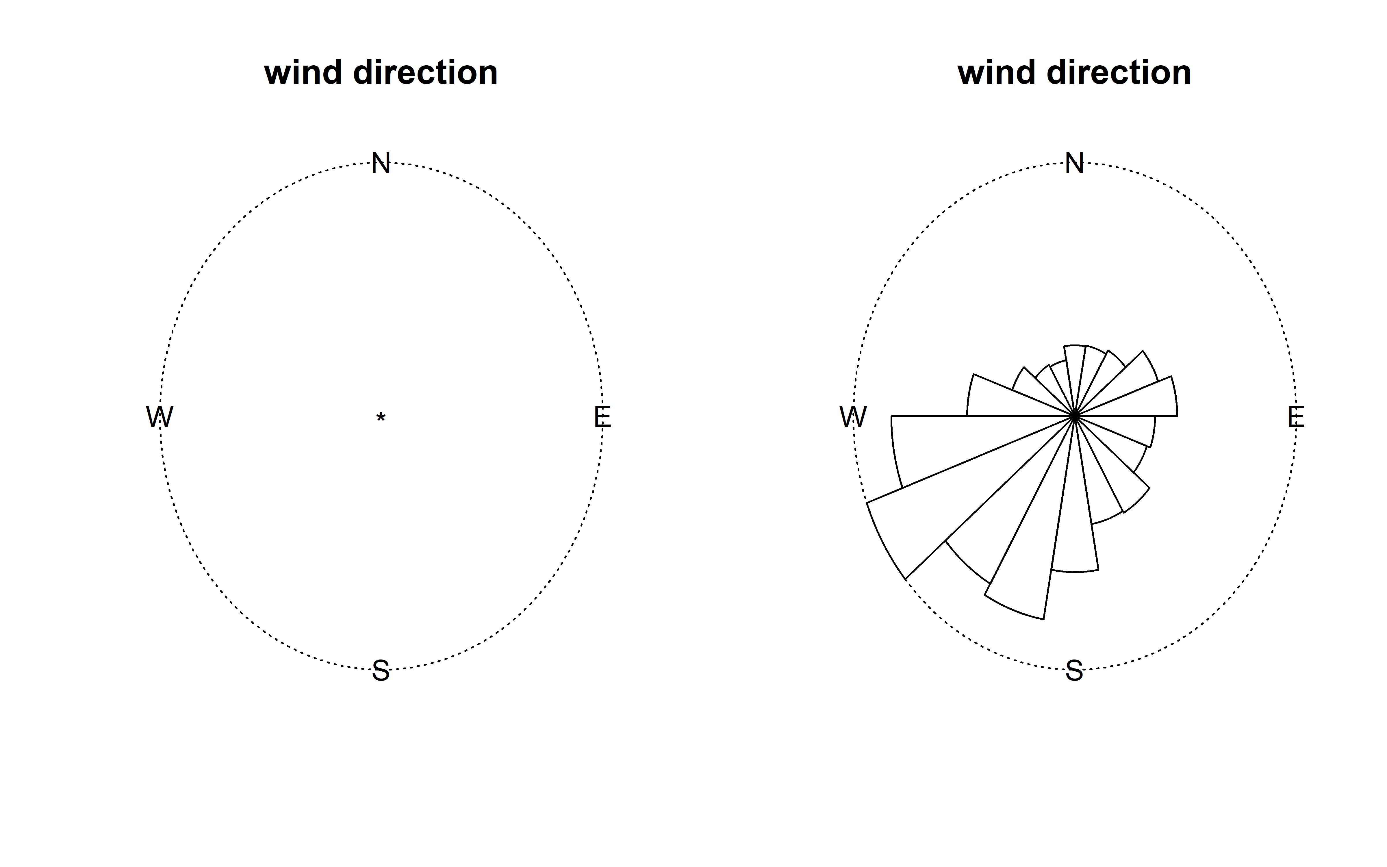 plot(cos(s), sin(s), type = "l", axes = FALSE, lty = "dotted", xlab = "", ylab = "", main = "wind direction")