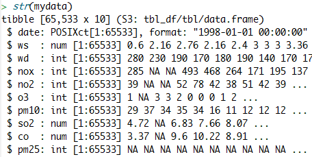 # openair::mydata에서 변수 wd는 바람이 불어오는 방향이다 (wd = 0은 북이고 wd = 90은 동, wd = 180은 남, wd = 270은 서이다).
